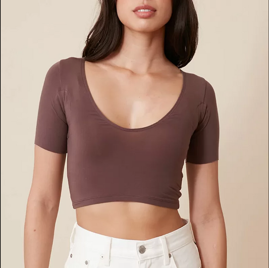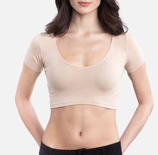 Short Solid Sweat Proof Undershirts Crop Scoop Neck Women's Anti Perspiration T Shirt